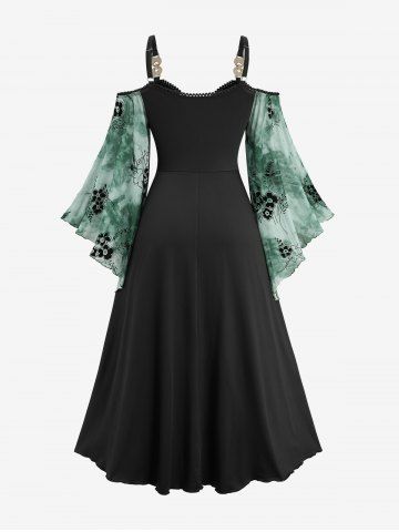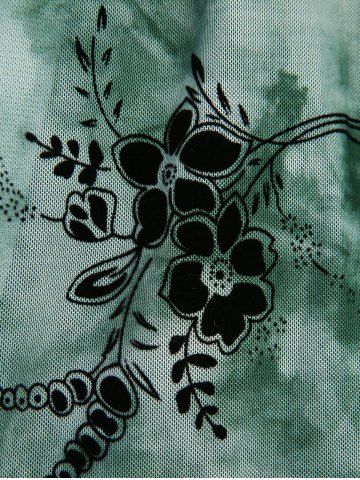 Plus Size Flower Flocking Tie Dye Ruffles Cinched Cold Shoulder Asymmetric Cami Dress - Green - 3x | Us 22-24