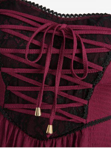 Plus Size Flower Lace Patchwork Textured Lace-up Crisscross Strappy Dress - Deep Red - 5x | Us 30-32