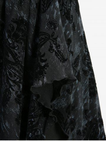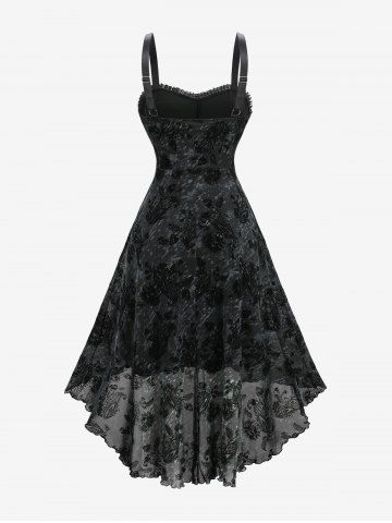 Plus Size Flowers Lace Trim Ruched Ruffles Lace-up Grommets High Low Tank Dress - Black - 1x | Us 14-16