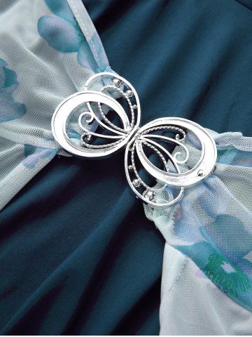 Plus Size Flutter Sleeves Floral Dress and Lace-up A Line Cami Dress Set - Blue - 4x | Us 26-28