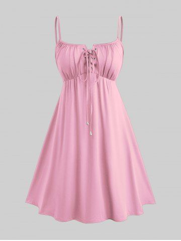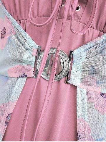 Plus Size Flutter Sleeves Floral Dress and Lace-up A Line Cami Dress Set - Pink - 1x | Us 14-16