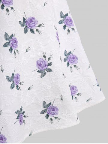 E*****y5Plus Size Flowers Print Embossed Butterfly Chain Panle Ruched Lace Up Grommets Ruffles Textured High Low DressColor: PURPLE Size: 3X | US 22-24Absolutely adorable and comfortable dress! Both cute and pretty! Perfect for an afternoon tea!