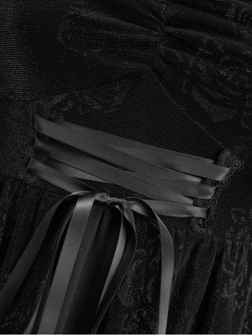 Plus Size Glitter Rose Flower Ruched Lace Up Handkerchief Layered Dress - Black - 4x | Us 26-28