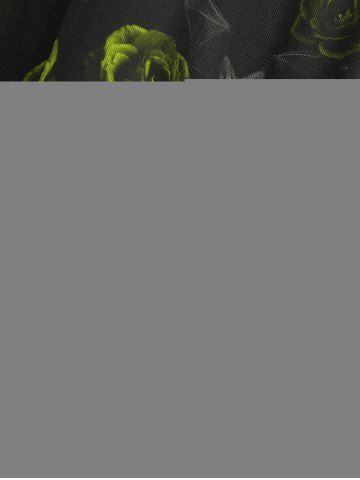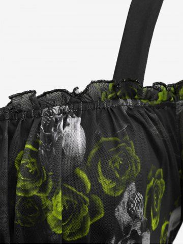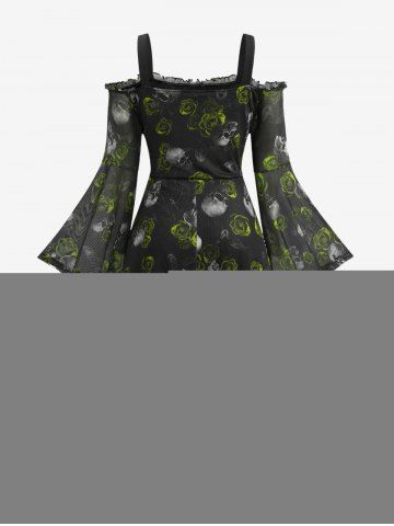 Plus Size Gothic Skull Rose Print Mesh Bell Sleeves Cold Shoulder Dress - Green - L | Us 12
