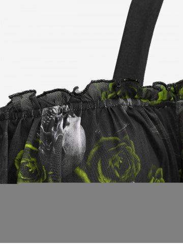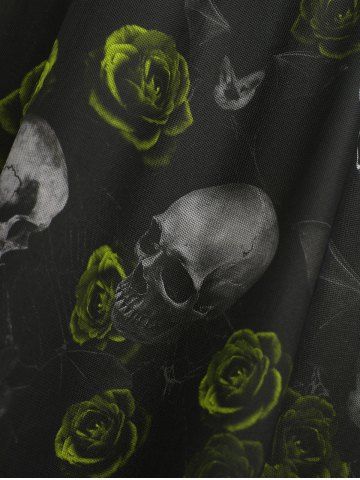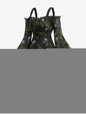 Plus Size Gothic Skull Rose Print Mesh Bell Sleeves Cold Shoulder Dress - Green - 2x | Us 18-20