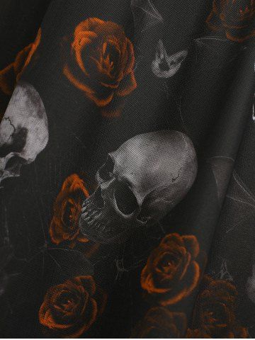 Plus Size Gothic Skull Rose Print Mesh Bell Sleeves Cold Shoulder Dress - Orange - 1x | Us 14-16