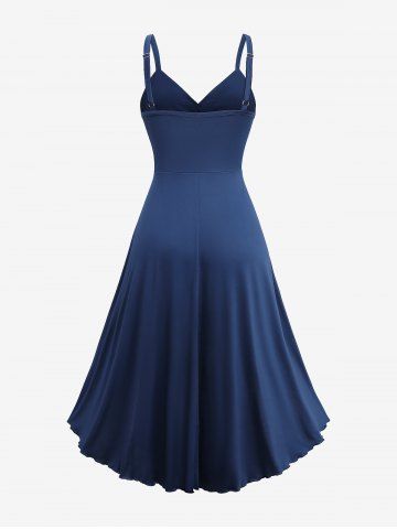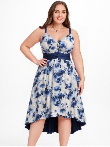 s*****45Plus Size Jacquard Cut Flower Chain Decor Ruched Asymmetric High Low DressColor: DEEP BLUE Size: 2X | US 18-20Perfect summer dress, a little short for someone my height so I wear bike shorts underneath mine but still a perfect dress