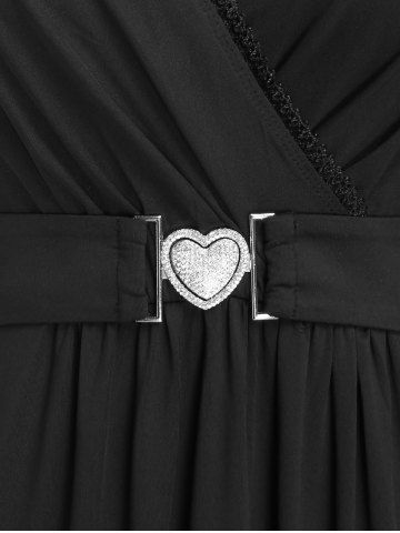 Plus Size Keyhole Lace Frill Mesh Flutter Sleeves A Line Midi Dress - Black - 3x | Us 22-24