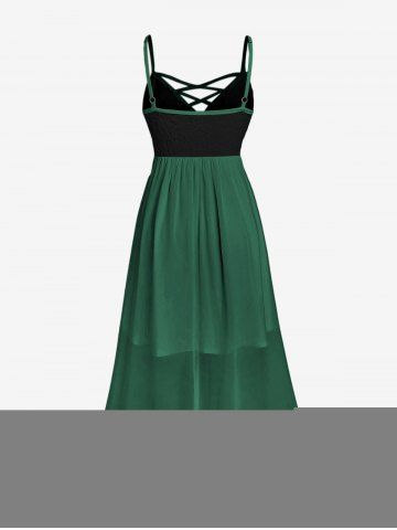 Plus Size Lace and Chiffon Ruffled Crisscross Maxi Sleeveless Wedding Dress - Deep Green - L | Us 12