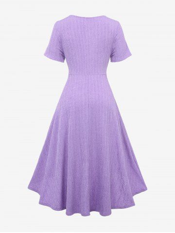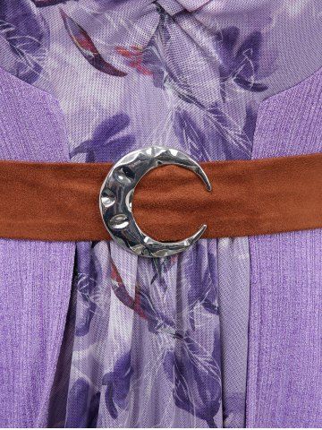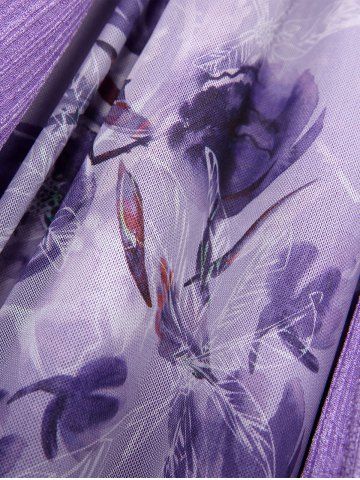 Plus Size Lace Trim Ruched Flower Print Mesh Patchwork Moon Buckle Belted High Low 2 In 1 Dress - Purple - 2x | Us 18-20