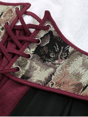 Plus Size Medieval Renaissance Lace-up Grommets Corset Ruffles Lace Trim Dress - Multi-f - 2x | Us 18-20