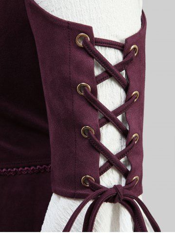 Plus Size Lace-up Grommets Ruffles Lace Trim Flare Sleeves 2 In 1 Dress - Deep Red - 3x | Us 22-24