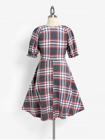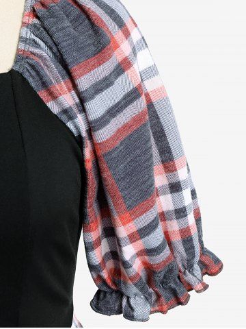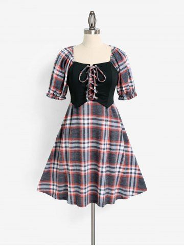 Plus Size & Curve Lace Up Raglan Sleeve Plaid Dress - Multi - 1x