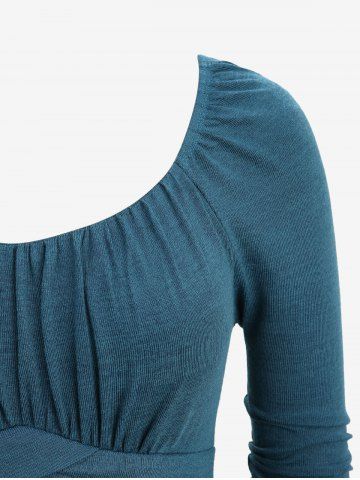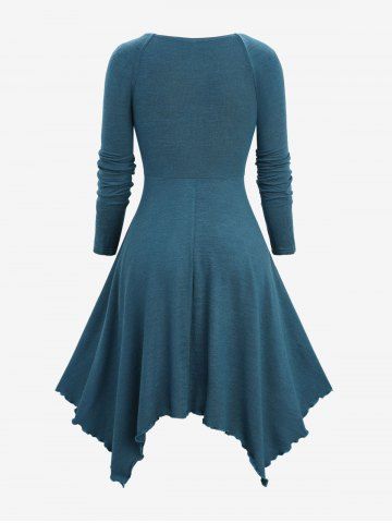 Plus Size Marled Ruched Panel Layered Ruffles Asymmetrical Dress - Peacock Blue - 2x | Us 18-20