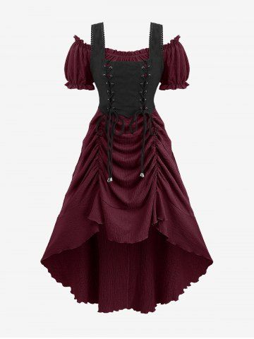 B*****a5Color: DEEP GREEN Size: 5X | US 30-32I'm 5 ft 6in; under bust 47in; bust 53in; waist (aka belly lol) 52in; hips 53in. I bought size 5x just because I can't stand tight clothes around my stomach. I could have gone with 4x. The green cloth has a small elastic band right under the girls (baby doll style). I believe that is a determining factor of measurements. The green cloth is SUPER stretchy!! The black, half vest has moderate stretch. The fact that I bought a 5x, there is plenty of extra room; the lace-up in the black material has a lot of slack, so it's actually hard to tell what it is.. but it is still Cute As HeL·L.