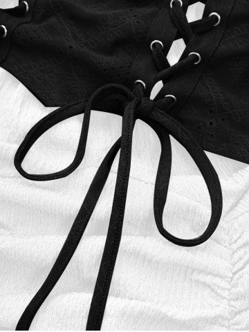 B*****a5Color: DEEP GREEN Size: 5X | US 30-32I'm 5 ft 6in; under bust 47in; bust 53in; waist (aka belly lol) 52in; hips 53in. I bought size 5x just because I can't stand tight clothes around my stomach. I could have gone with 4x. The green cloth has a small elastic band right under the girls (baby doll style). I believe that is a determining factor of measurements. The green cloth is SUPER stretchy!! The black, half vest has moderate stretch. The fact that I bought a 5x, there is plenty of extra room; the lace-up in the black material has a lot of slack, so it's actually hard to tell what it is.. but it is still Cute As HeL·L.