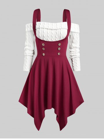 Plus Size Off The Shoulder Cable Knit Top and Handkerchief Midi Dress - Deep Red - L | Us 12