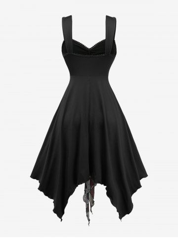 Plus Size Paisley Floral Print Surplice Twist Lace Trim Asymmetrical Tank Dress - Black - 4x | Us 26-28