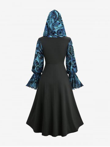 Casual Dresses > Plus Size Paisley Flowers Flocking Mesh Buckle Lace Trim Ruched Ruffles Hooded Dress