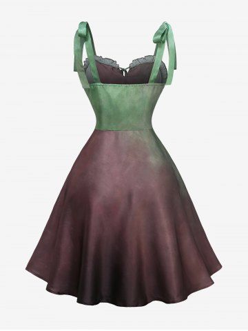 Plus Size Pleated Ruched Panel Ruffles Tie Bowknots Ombre Tank Dress - Green - 2x | Us 18-20