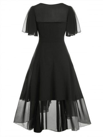 p*****54Plus Size Plunge Flutter Sleeve Chiffon Maxi DressColor: BLACK Size: 1X | US 14-16I made sure to order by measurements and it fits great!