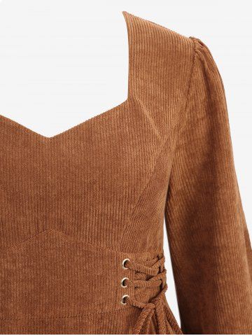 Plus Size Ribbed Textured Lace Up Asymmetrical Dress - Coffee - 1x | Us 14-16