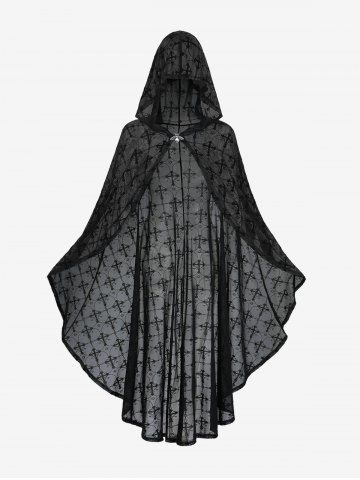 Casual Dresses > Plus Size Ruched Ruffles Velvet Cami Dress With Belt And Cross Floral Flocking Mesh Hooded Ponchos Cloak