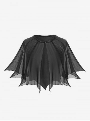 Casual Dresses > Plus Size Ruched Skull Flocking Mesh Tank Dress With Lace Trim Button Cover Cape
