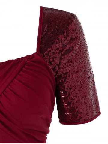 D*****e5Color: DEEP RED Size: 3X | US 22-24Looking forward to wearing this to the upcoming xmas parties this year. It fits well and it a lovely cranberry color the sequins give it a nice festive fancy feel.