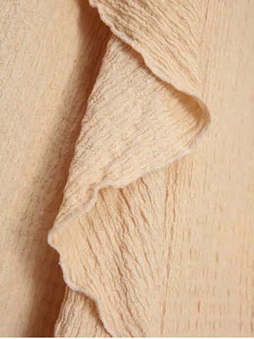 Plus Size Ruffles Ruched Plisse Cami Dress With Rose Flower Leaf Print Mesh Flare Sleeves Top - Light Brown - 3x | Us 22-24