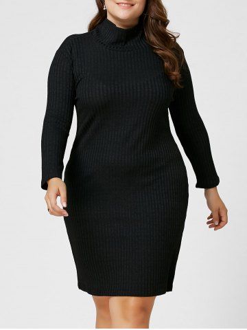 Plus Size Sheath Turtleneck Ribbed Sweater Dress - Black - 3xl