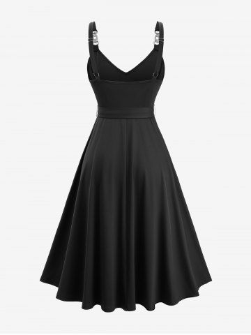 Plus Size Solid A Line Casual Dress with Removable Belt - Black - 1x | Us 14-16