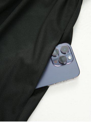 Plus Size Solid Pockets A Line Dress with Removable Belt - Black - L | Us 12