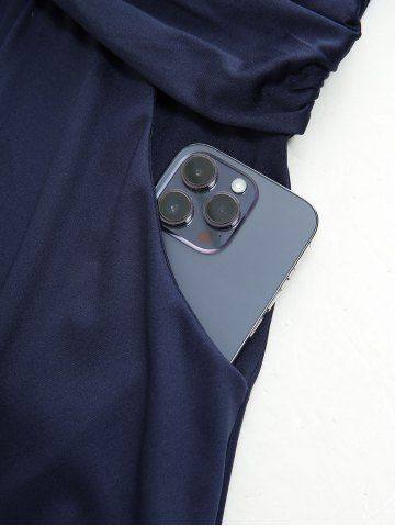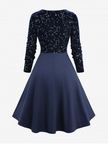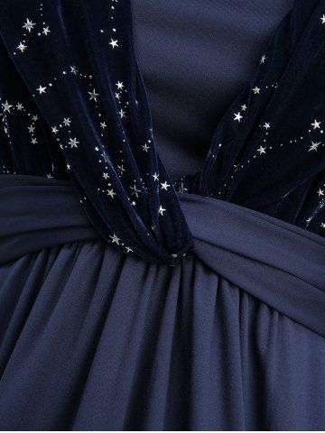 Plus Size Star Silver Stamping Velvet Pocket Ruched 2 In 1 Dress - Navy Blue - L | Us 12