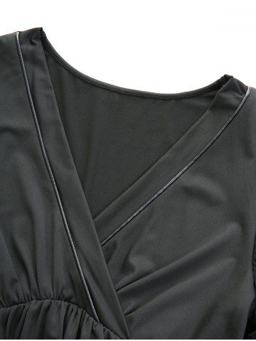 Plus Size Surplice Rose Flower Lace High Low Dress With Butterfly Zipper Belt - Black - L | Us 12
