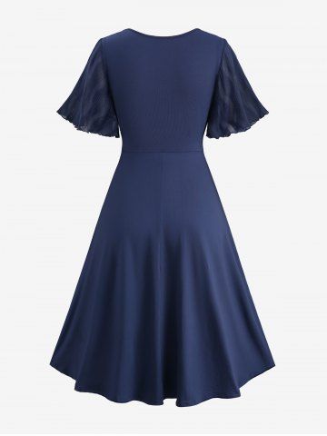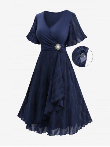 v*****95Plus Size Chain Panel Ruched Layered Lettuce Trim Surpliced DressColor: DEEP BLUE Size: 4X | US 26-28Absolutely love this dress. Fits perfectly and it's great material. The color is absolutely gorgeous and it remains the same after getting washed.