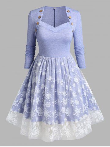 Casual Dresses > Plus Size Sweetheart Neck Snowflake Mesh Panel Christmas Dress