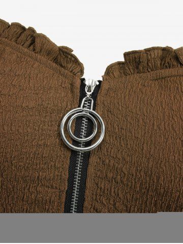 Plus Size Zipper Textured A Line Dress with Removable Belt - Coffee - 2x | Us 18-20