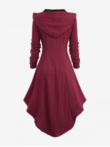 Plus Size Coats > Plus Size Cable Knit Textured Pockets Horn Buttons Hooded Coat
