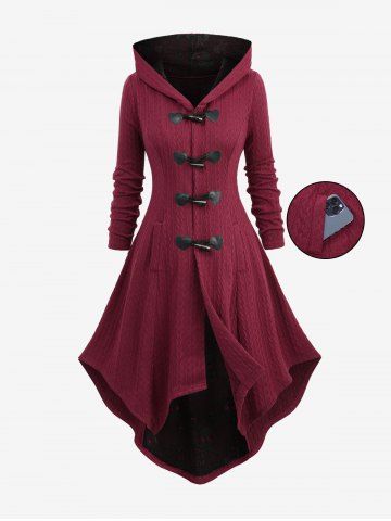 Plus Size Coats > Plus Size Cable Knit Textured Pockets Horn Buttons Hooded Coat