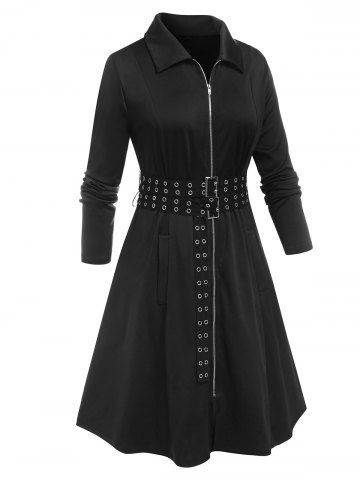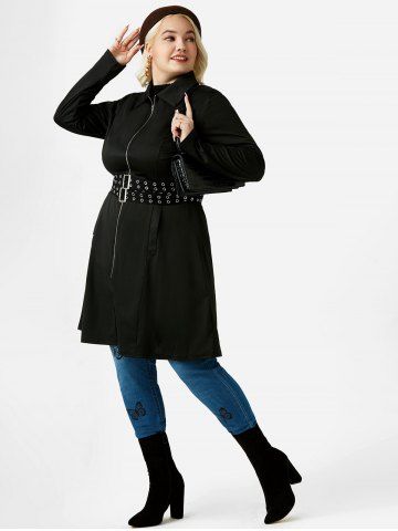 B*****b5Plus Size Double Belted Grommet Zip Pocket Long CoatColor: BLACK Size: 3XReally nice shirt/jacket with two grommet belts. The material is soft and comfortable, perfect fit, shipped fast and packaged nicely. High quality design and made very well!