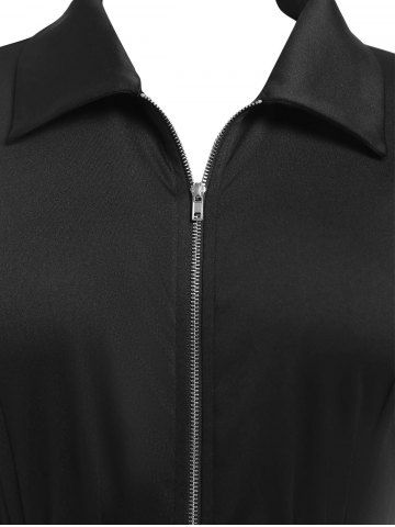 S*****n5Plus Size Ribbed Panel Zipper Fly Turn Down Collar JacketColor: BLACK Size: M | US 10I love this jacket so much that have bought it 3 times just to make sure I always have one. I love the length and how it is snug right under the chest area, very flattering.