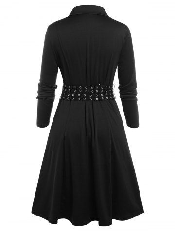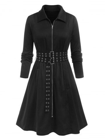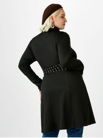 B*****b5Plus Size Double Belted Grommet Zip Pocket Long CoatColor: BLACK Size: 3XReally nice shirt/jacket with two grommet belts. The material is soft and comfortable, perfect fit, shipped fast and packaged nicely. High quality design and made very well!