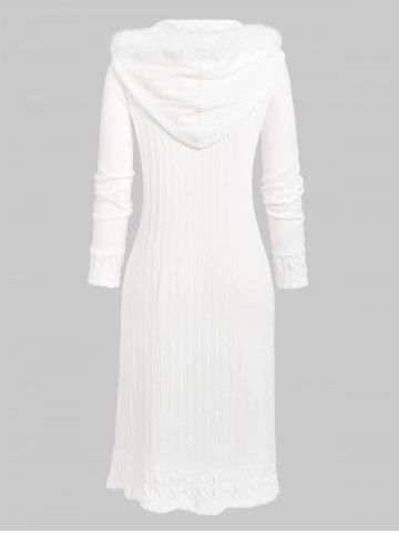 Plus Size Faux Fur Collar Buttons Cable Knit Solid Coat - White - L | Us 12