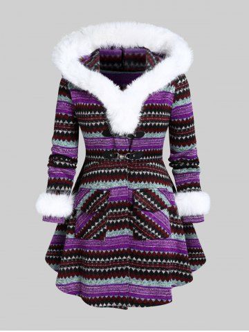 *****e5Plus Size Faux Fur Panel Geometry Buckle CoatColor: PURPLE Size: L | US 12absolutely love it. get so many compliments when I wear it