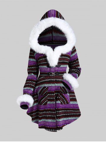 *****e5Plus Size Faux Fur Panel Geometry Buckle CoatColor: PURPLE Size: L | US 12absolutely love it. get so many compliments when I wear it