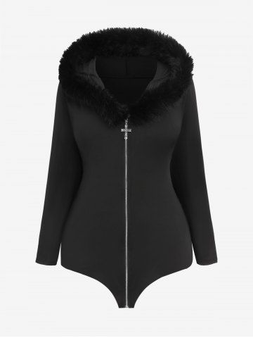 Plus Size Fur Neck Cross Zipper Bat Wing Hooded Coat - Black - L | Us 12