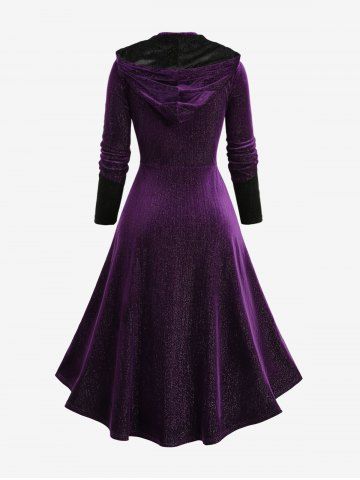 Plus Size Glitter Line Insert Button Ruffles Asymmetric Hooded Long Sleeve Coat - Purple - 2x | Us 18-20