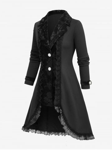 d*****75Plus Size Lapel Collar Embossed Floral Velvet Patchwork Lace Trim Button Ruffles Long Sleeves CoatColor: BLACK Size: 1X | US 14-16Superbe qualité de tissus et l'originalité est tout simplement extraordinaire