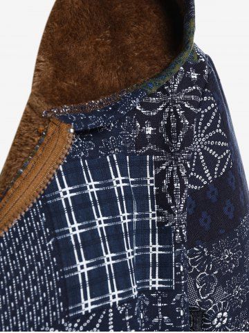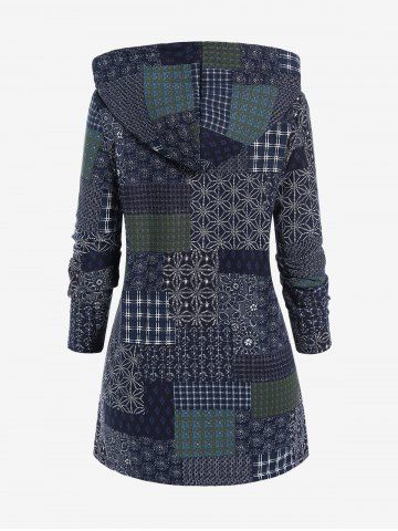 m*****e5Plus Size Patchwork Print Hooded Fleece Lined CoatColor: DEEP BLUE Size: 5XLil est trop cintrée donc je ne peux pas le fermer, hé suis trop déçue car il est très beau.